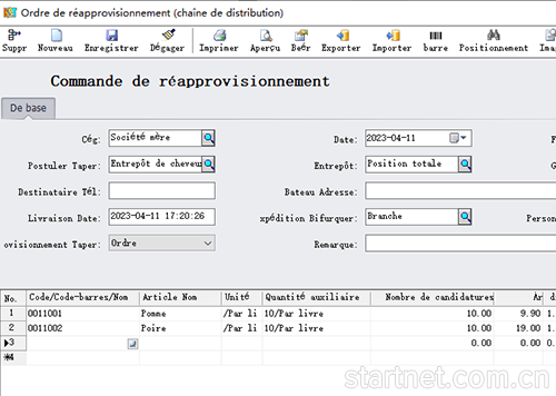 分销连锁配送法语版连锁配送系统,连锁多门店配送管理,支持自动补货配送,可处理总部与分店之间的买卖往来,区分终端销售与内部分销,20年海外大型连锁分销客户服务经验的沉淀。