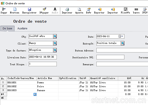 订单和销售系统法语版批发销售管理系统,连锁多门店批发销售管理,从订单、销售、出库、结算都可以用选单操作关联控制,并提供线上线下一体化的法文版在线订货系统。