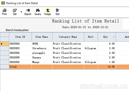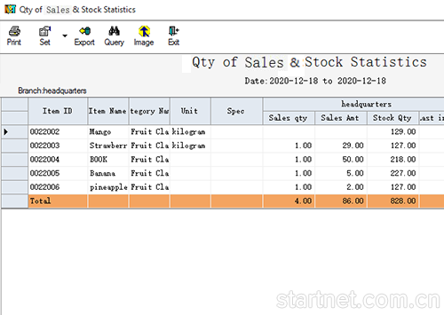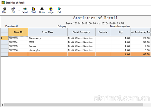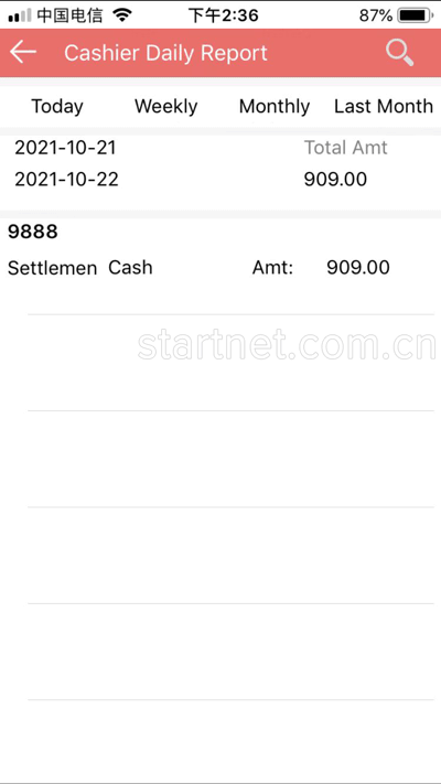 启网中英文POS收银软件APP端零售管理——零售统计报表英文版界面