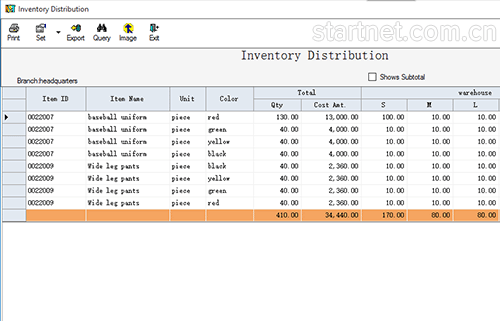 中英文版服装多门店库存管理——库存分布表颜色尺码多列