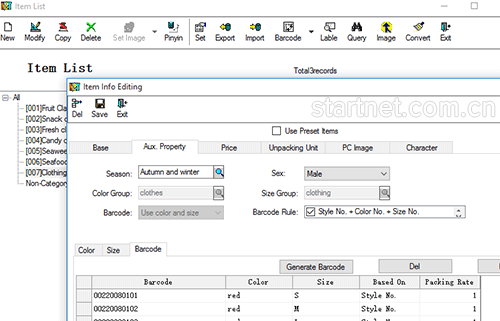 中英文版服装库存管理——货品资料颜色尺码二维表