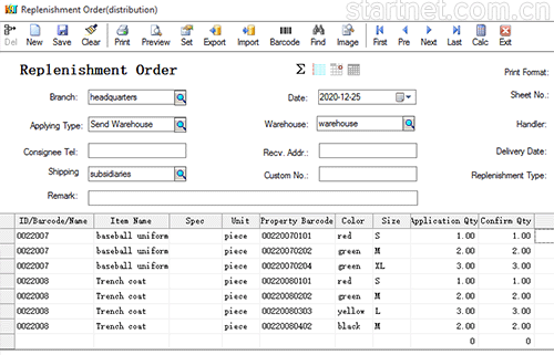 启网中英文服装管理软件App端——门店补货单