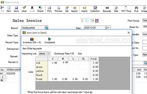 中英文版服装销售管理——销售开票颜色尺码二维表