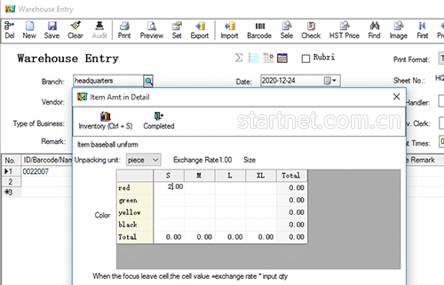 中英文版服装库存管理——入库单颜色尺码二维表