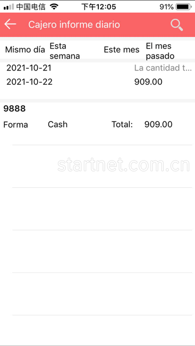 启网西班牙文POS收银软件APP端零售管理——零售统计报表界面