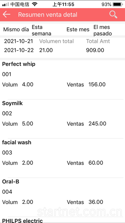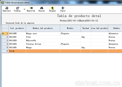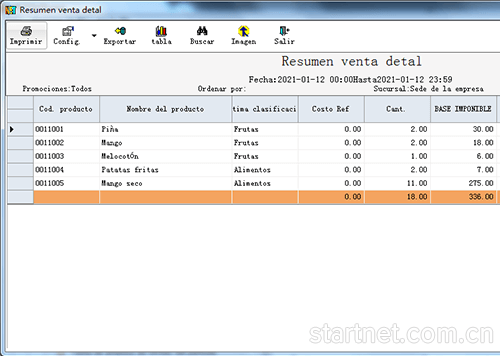 西班牙文版零售管理——销售排行榜西班牙文界面