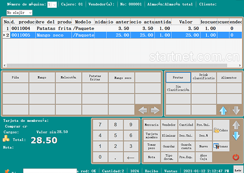 西班牙文版零售POS收银界面——适合于超市便利店、服装行业、电子产品等大部分零售收银场景