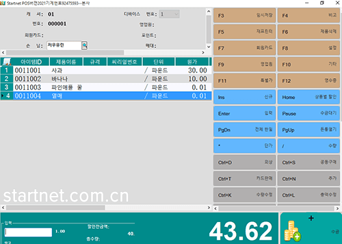 韩文版零售POS收银界面——适合于超市便利店、服装行业、电子产品等大部分零售收银场景