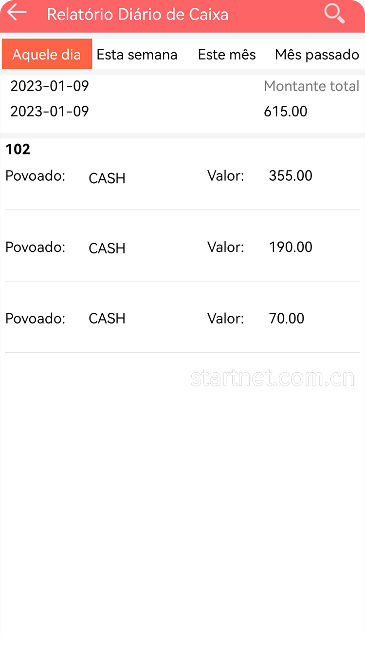葡萄牙文APP端零售管理——收款日报表葡萄牙文版界面