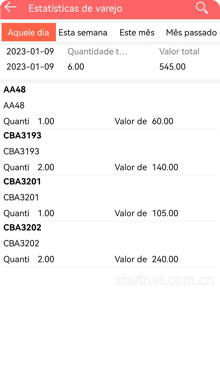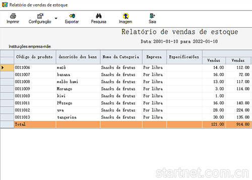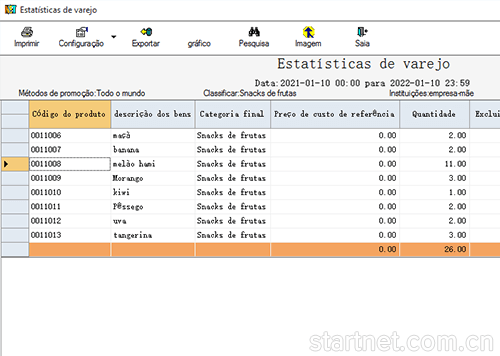 葡萄牙文版零售管理——零售统计表葡萄牙文界面