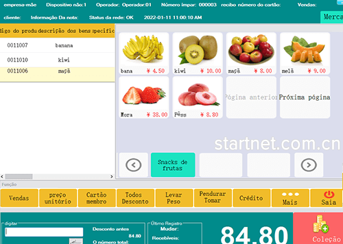 葡萄牙文版触摸屏POS收银界面——带货品图片的触屏界面,适合于餐饮、生鲜蔬果等货品数量不多的零售收银场景