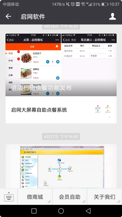 与启网pos.net收银系统互动,线下微信支付后可马上关注企业公众号,推送商品促销打折等信息。